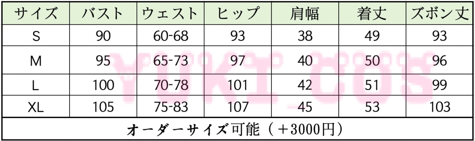 | 衣装の製作日数(目安)*繁忙期により変わる場合がある *在庫がある場合もある。追加アイテムがある場合、製作日数も変わる可能性がございます。お急ぎの方、お気軽にお問い合わせください。 | 40−50日間 |